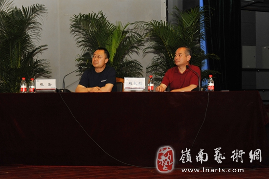 中国艺术研究院研究员、《美术观察》副主编赵权利(右)与陕西省美协理论委员会常务副主任兼秘书长、陕西省美术博物馆学术委员张渝,担任“论中国山水画精神”第二届陕西省山水画论坛(下半场)学术主持人