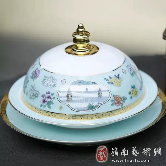 嵇锡贵是从事陶瓷彩绘艺术的一位画家,她一辈子想圆的梦就是能在陶瓷器物上绘制出自己心中最美的图画。15岁那年,她考入景德镇陶瓷美术技艺学校青花班,师从名艺人学习青花。19岁那年,她考入景德镇陶瓷学院美术设计系,向名师和老艺人学习古彩和粉彩。23岁那年,她进入轻工业部陶瓷研究所艺术室工作,逐步积累丰富的实践经验,打下了深厚的传统彩绘艺术和现代设计艺术的基础,各种传统技法无不精通,釉上、釉下、仿古、创新,都能得心应手。44岁那年,她调入浙江省工艺美术研究所,此后又潜心钻研越窑青瓷、南宋官窑青瓷、龙泉青瓷、婺州窑青瓷、长兴紫砂陶器的烧制技艺和装饰技艺。她深深懂得,美不能局限于欣赏,必须牢牢地扎根于民众的生活中,把美和生活中的器物统一起来,才能显现出工艺文化的力量。从艺60年来,由她装饰的陶瓷艺术品不计其数,并屡屡在国际、国内的大展中斩金夺银。1975年,她作为主要设计制作者之一,为中南海毛主席用瓷(即“7501”瓷)绘制了整套釉下彩餐具《梅竹》;1976年,她为上海锦江饭店接待外国元首创作了《麦浪滚滚》的整套图案;2016年,她又担任G20杭州峰会国宴用瓷的画面总设计,创作并绘制了《繁华盛世》《国色天香》两套瓷器彩绘作品。这些作品,因其高贵和稀少,民间已经很难见到。就在我写此文时,微信上传来消息,2017年7月20日,中国国家博物馆确定收藏和展出《繁华盛世》和《国色天香》这两套国宴用瓷。