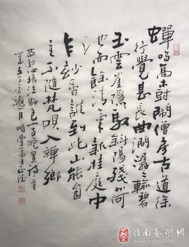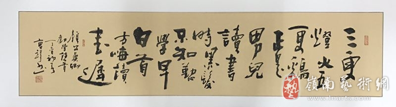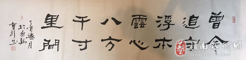曹锋的书法,多是诗、书兼备,同时又加上绘画的意趣。他作画也取法于古人,陶然于古人绘画的那种移神定质,轻墨落素,有象因之以立,无形因之以生的清雅、秀逸、古朴之中,但他仍能以一个现代的审美视角去体味那种意趣,出以新境;于是曹锋的书法,由诗达其性情,由意解其灵机,从而创造出寓含着浓郁的诗意画意的书作,其字外之意、象外之象,所抒发的多是他飘逸、洒脱的胸中的逸气