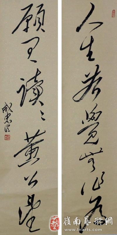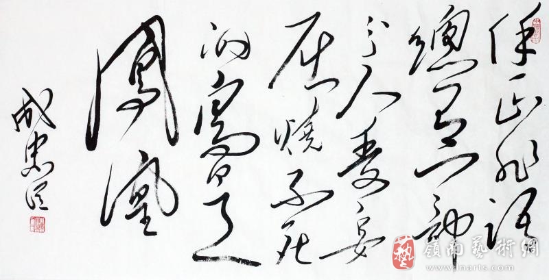 成忠臣讲他在少年时学书是从古人基础入手,在基础扎牢后才学的毛体。他按董寿平老师告诫的用古人法度去融毛体的结体,从而形成了一个科学的训练模式。成忠臣同时还讲,一个书家要取得成绩,必须要有不同于别人的思想,在这种思想和理念的前提下,确定出一个训练模式,然后才能有不同于别人的结果,这就是讲用脑子写字而不是用手。他把颜真卿、苏东坡、王铎、郑板桥这些古人元素融入毛体的结体中,把这些问题和矛盾解决,也就是讲用古人字形,但不一定用他们的手法。这些方法大多数人一辈子也想不到,所以他们只能是个爱好者。另外毛体是草书,草书从严格意义上讲不是学来的,因为它的生成原始状态就是一种极度情绪化的东西,草书要写出气势和特色,要写出情趣,一要有渊博的知识,二要有非凡的精神气质,不同寻常的经历,过人的悟性以及时代的底气来支撑。如学草书没深厚的文化底气作支撑,想高雅也高雅不了,这是因为其修养、认知就在那个层次上。另外草书还必须要有很高的技巧水平,我们知道草书书写往往要一气呵成,书写要一直保持中锋用笔,而中锋用笔必须熟练掌握捻管技巧,所谓捻管就是转笔调锋,通过捻管来回锋调锋,上一笔法结束时,把笔调到中锋书写状态,以便更好地适合下一笔书写。