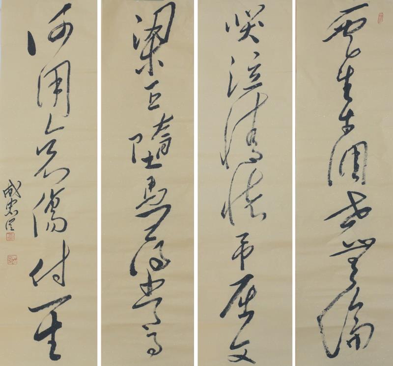 全国学毛体者不少,但从传统入手形成功底者不多。成先生自幼习书,后又专以毛体为基调,他的作品彰显着毛体书风那种一往无前,压倒一切的气势,其作品阔绰自在,悠游沉着,是一种人文思想境界追寻。