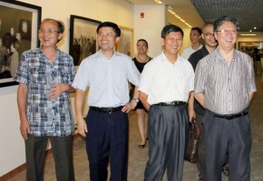 中国美术家协会会员肖映川、南城区党委书记钱超、 东莞市人大副主任王道平、当代著名画家李宝林、 中国美术家协会会员陈炳佳、艺展中心总经理赵永臣(从左至右)