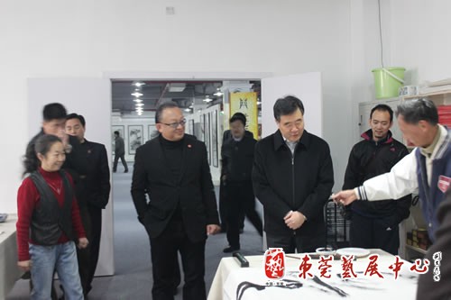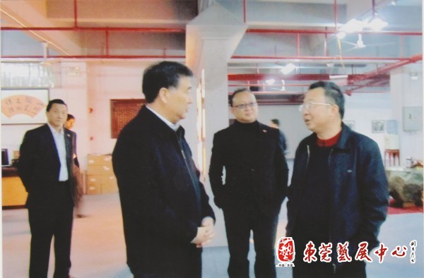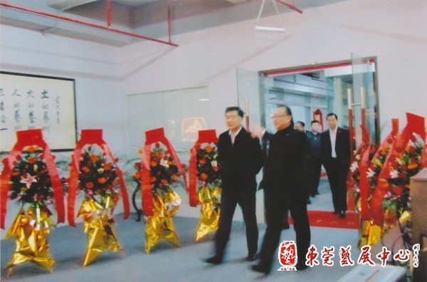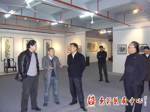上午9点,汪洋在艺展中心总经理赵永臣的带领下参观了艺展中心。汪洋了解到位于东莞南城袁屋边社区的艺展中心,前身是面积达5万平方米的空置厂房,2008年南城放弃用这块地发展房地产和科技园项目,而签约艺展中心,双方共出资8000万元,改造为艺术品、收藏品专业市场。如今,东莞艺展中心聚集了500多家文化艺术单位及企业。开业以来,总营业额超过3000万,举办展览近150场。